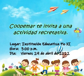 La Cooperativa multiactiva de Aranzazu Limitada, invita a una tarde recreativa que tendrá lugar en las instalaciones de la Institución Educativa PIO XI.